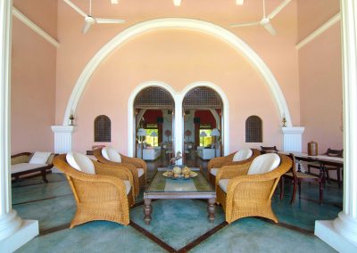 The house is spacious, light and cool and very prettily decorated by an English owner. The double-height sitting room has big sofas and there are stunning 180-degree views of the Indian Ocean.