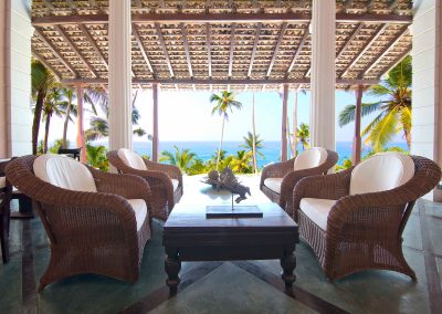 This house enjoys great privacy as it sits high above a quiet and very beautiful beach; 75 steps wind down through the trees to the palm-fringed white sand. This is not a good swimming beach for young children but it is good for experienced surfers and great for walkers.
