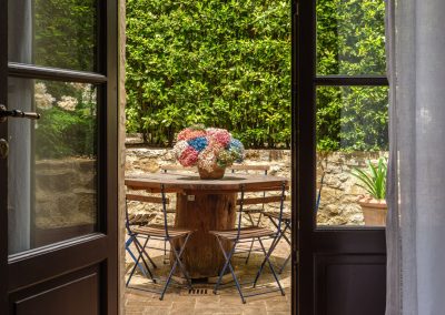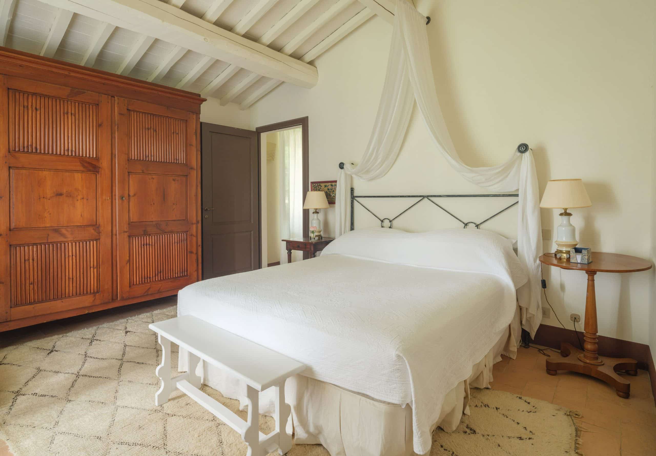 They are charming, elegant and very atmospheric, combining lovely pieces of antique furniture sourced in Arezzo and Florence, pictures, rugs and lots of pretty china and pottery.